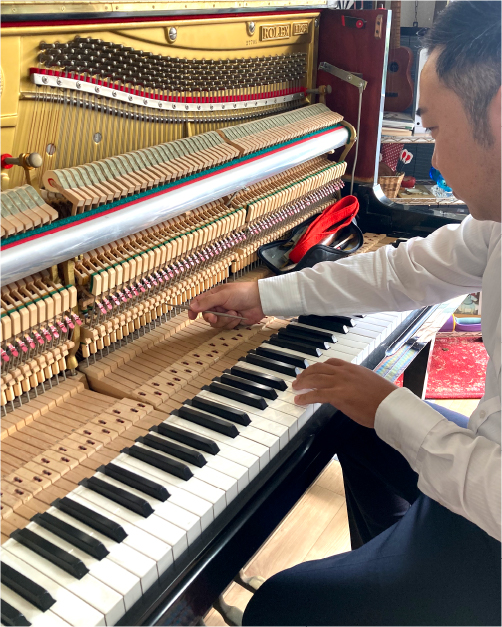 それぞれのピアノに耳を傾けながら、日々の暮らしに寄り添う音づくりを大切にしています。After graduating from the Kyoto Technical College of Piano Technology,